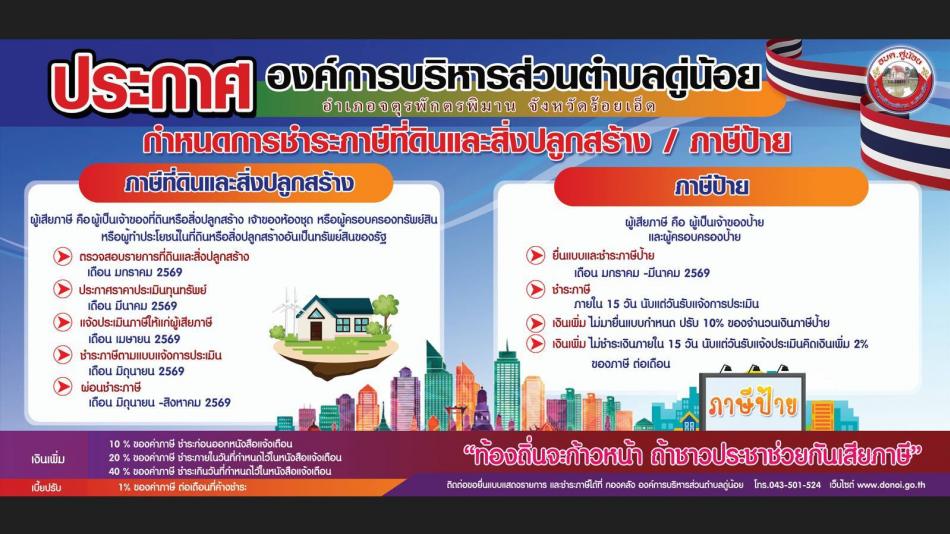 อบต.ดู่น้อย ขอประชาสัมพันธ์ ภาษีที่ดินและสิ่งปลูกสร้าง ภาษีป้าย